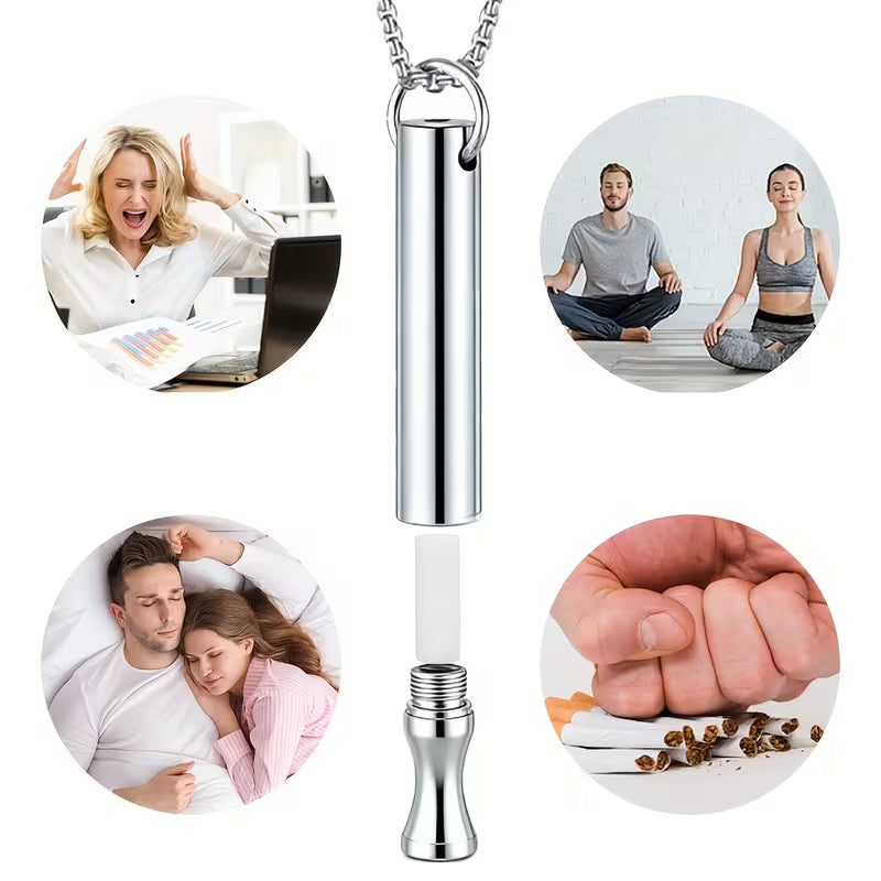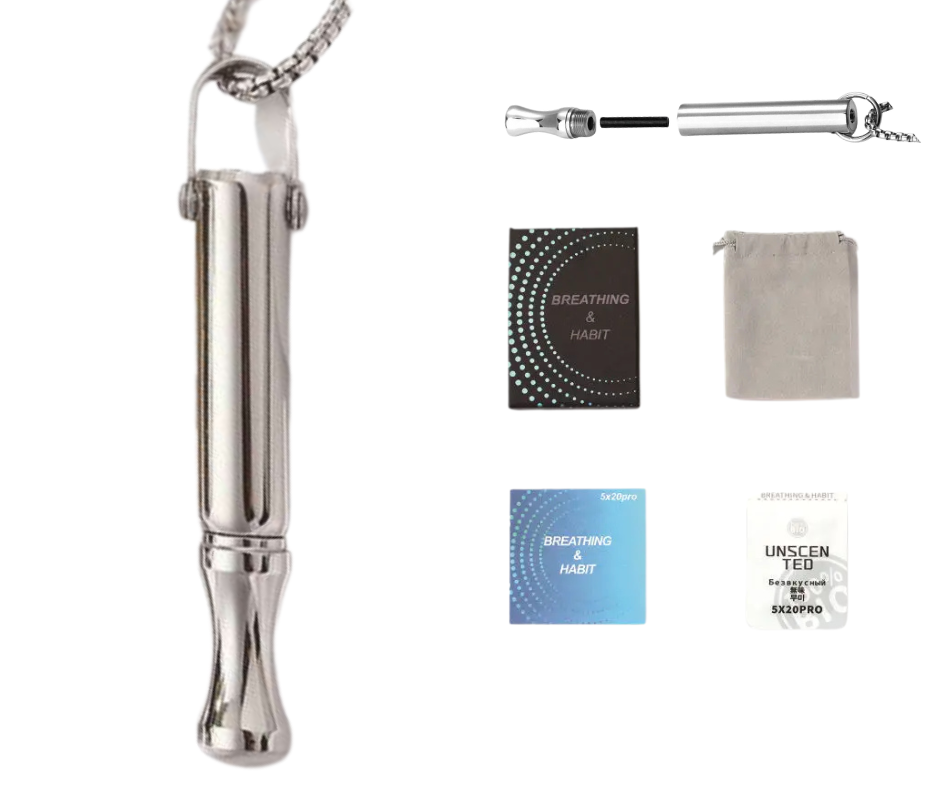 Zestaw Naszyjnik do rzucania palenia | Gwizdek do oddychania | Klepsydra SET 4w1 | Srebrny